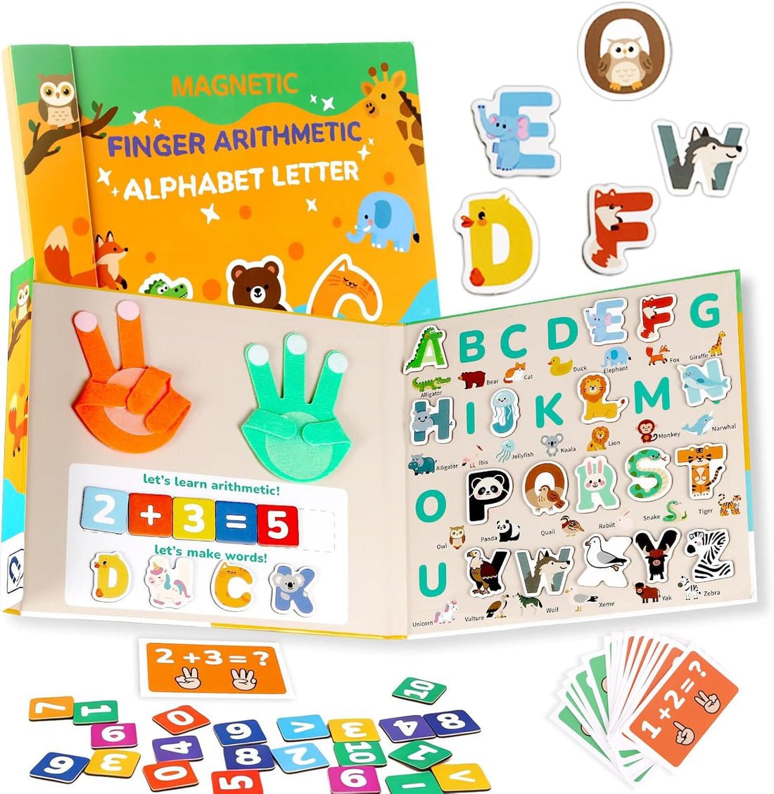 A fun, educational toy that grows with your child! This 2-in-1 magnetic board includes 53 colorful magnetic pieces — letters and numbers — so kids can practice letters, counting, and simple number play with fingers including addition and subtraction. The compact, book-style design makes it easy to carry from home to car or classroom, while the magnetic pieces securely stick to the board for mess-free learning. Ideal for toddlers and preschoolers aged 3–6, it turns learning ABCs and 123s into an entertaining, hands-on activity.