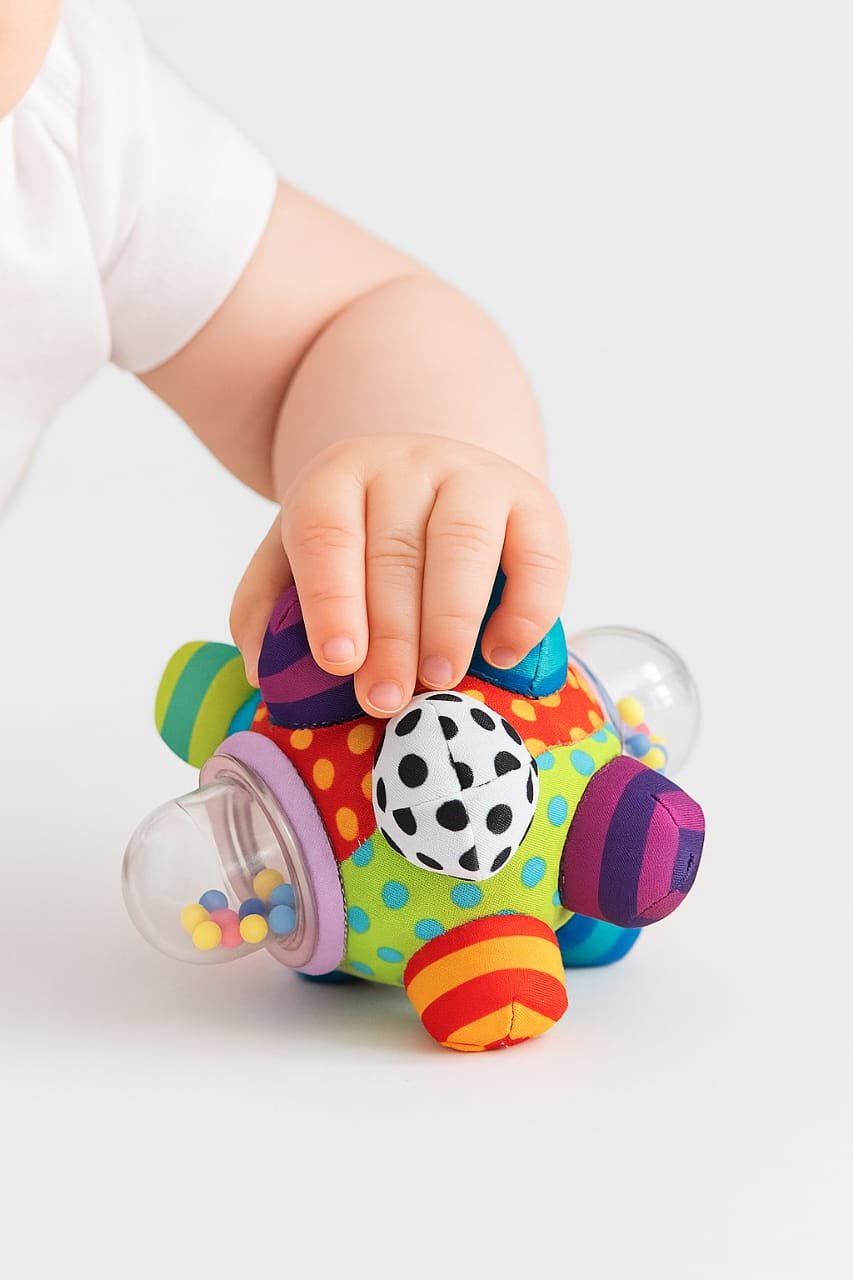 Bright, soft, and easy to grasp, this Developmental Bumpy Ball helps babies build motor skills and hand-eye coordination through play. Its colorful bumps encourage touching, rolling, and exploring—perfect for stimulating a baby’s senses and curiosity from 0 to 12 months.