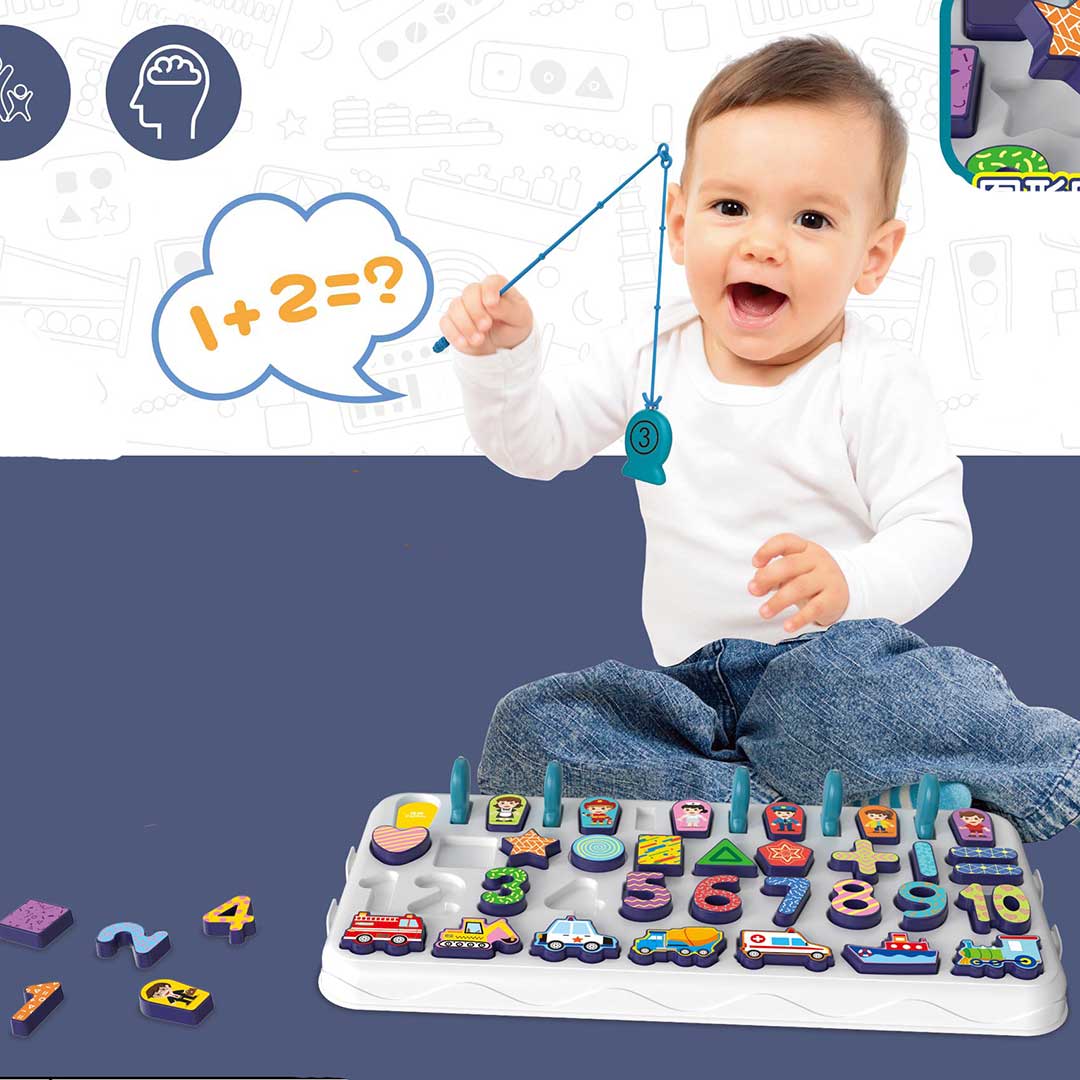 This multifunctional fishing board comes in attractive colours with various features for kids to learn about shapes, numbers and get hold on their fine and gross motor skills. It will help kids develop/learn;