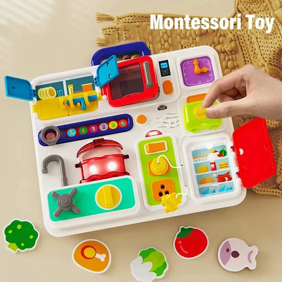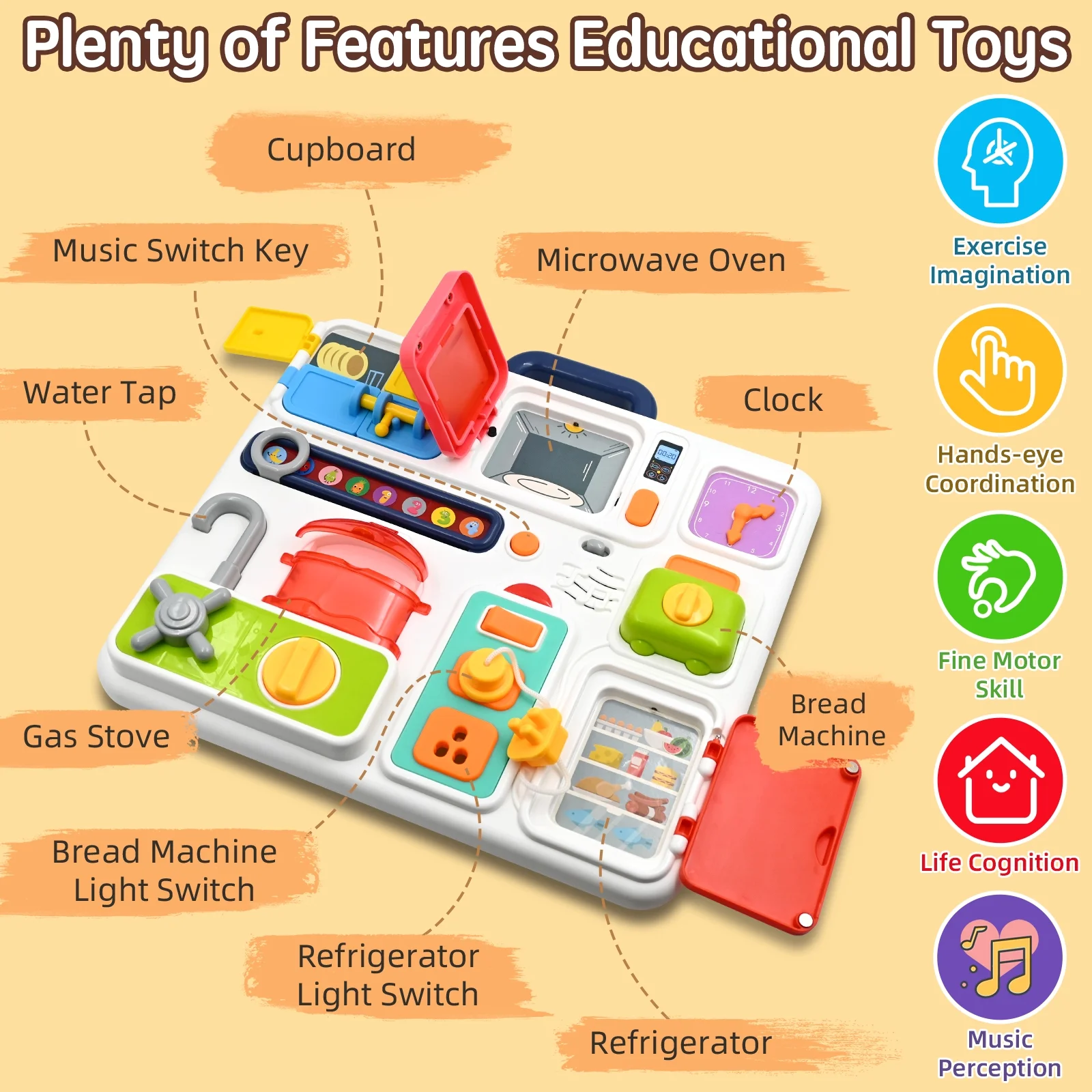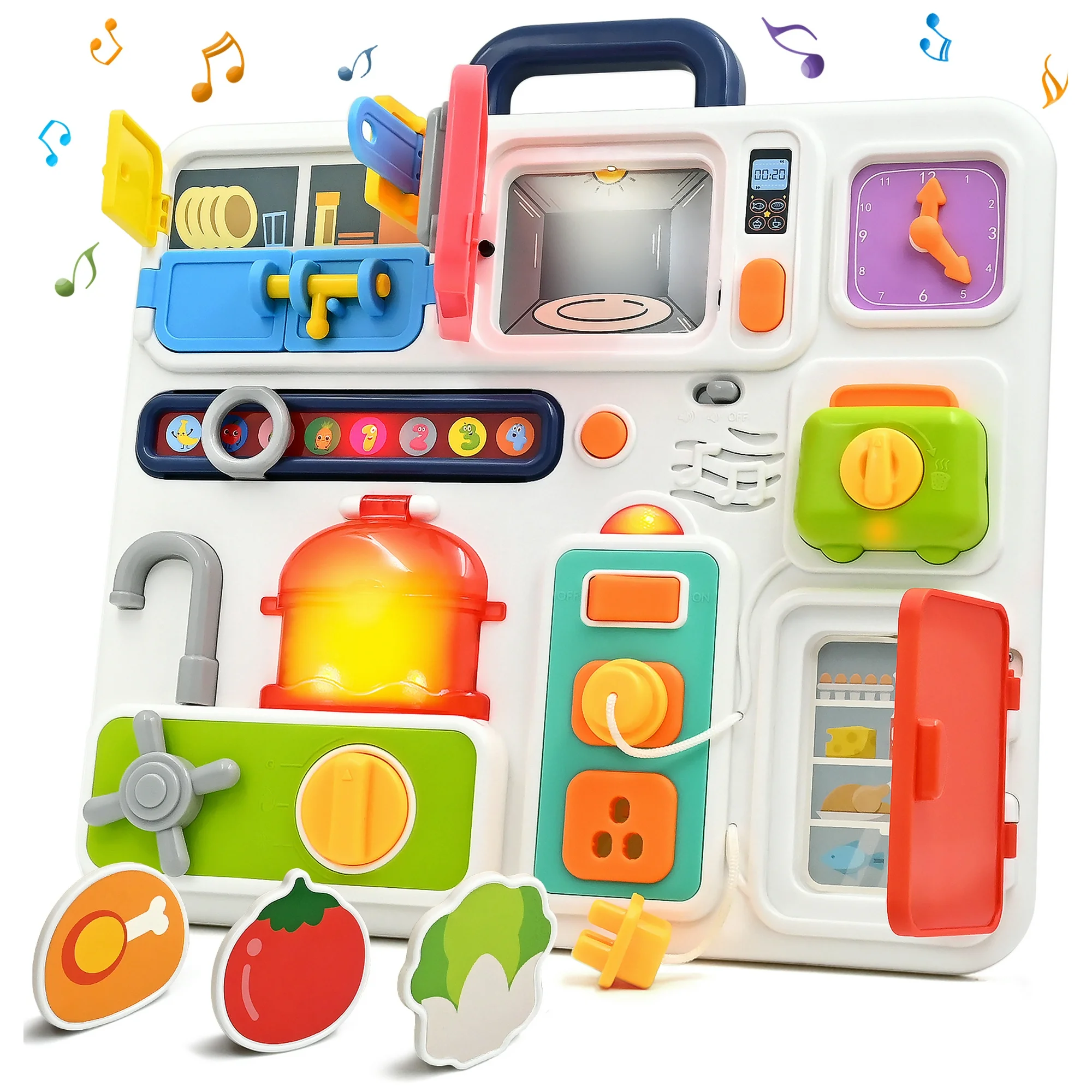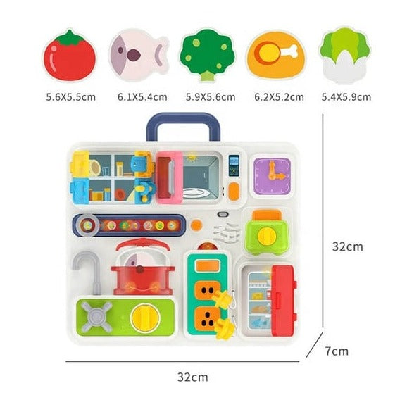 Inspire little chefs with this fun and interactive kitchen busy board! Designed for imaginative role play, it includes realistic accessories that help kids explore cooking, develop fine motor skills, and enjoy hours of pretend play. Perfect for budding cooks aged 3 and up.