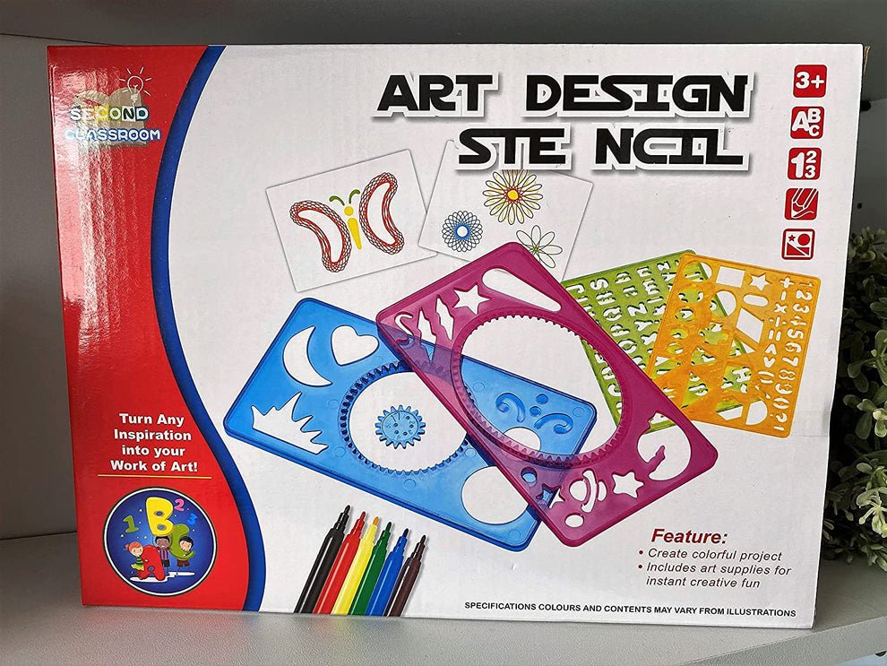 Box includes: 4 stencils and 6 markers